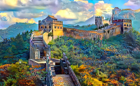 Great Wall of China White Modern Wood Framed Art Print with Double Matting by Gavidia, Pedro