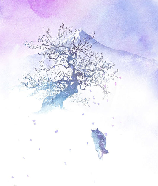 Japanese Spring Coral White Modern Wood Framed Art Print with Double Matting by Jenny Rainbow Fine Art