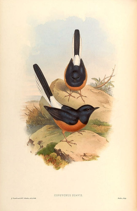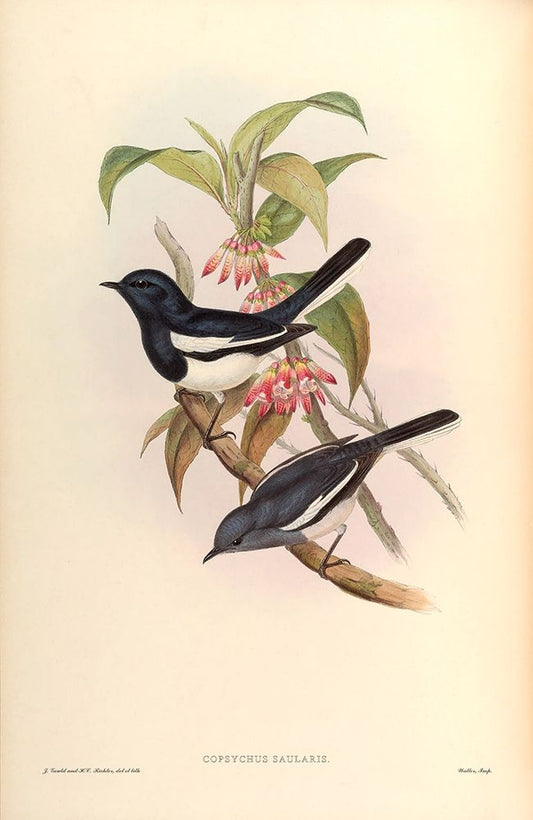 Copsychus Saularis White Modern Wood Framed Art Print with Double Matting by CAG