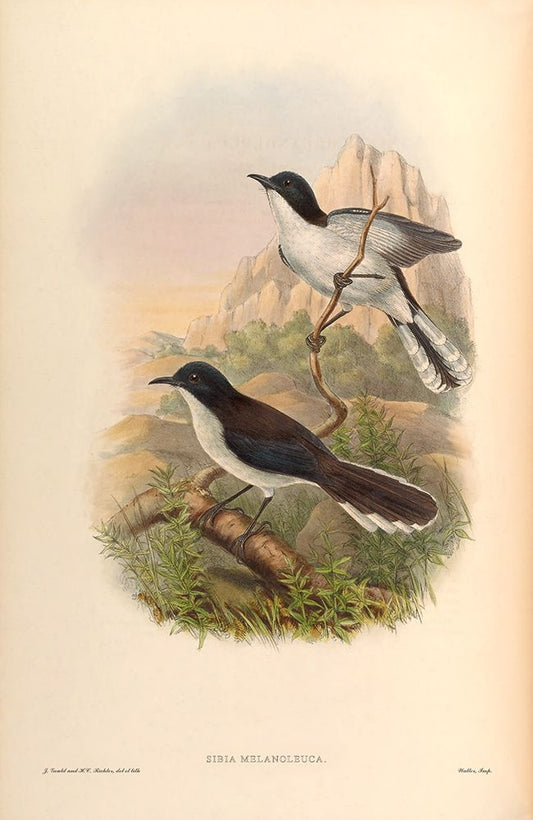 Sibia Melanoleuca White Modern Wood Framed Art Print with Double Matting by CAG