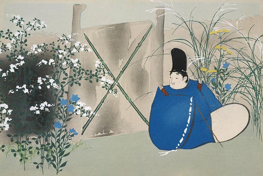 Flute player from Momoyogusa White Modern Wood Framed Art Print with Double Matting by Sekka, Kamisaka