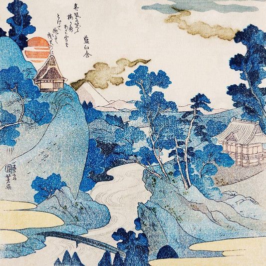 Sesshu Ajigawaguchi Tenposan White Modern Wood Framed Art Print with Double Matting by Hokusai, Katsushika