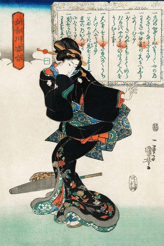 Tamaya uchi Usugumo White Modern Wood Framed Art Print with Double Matting by Kuniyoshi, Utagawa