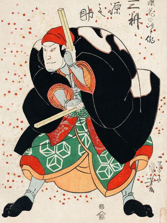 Mimasu Gennosuke no Namiwa no Jirosaku White Modern Wood Framed Art Print with Double Matting by Kuniyoshi, Utagawa