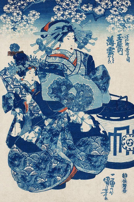 Ogiya uchi Hanaogi White Modern Wood Framed Art Print with Double Matting by Kuniyoshi, Utagawa