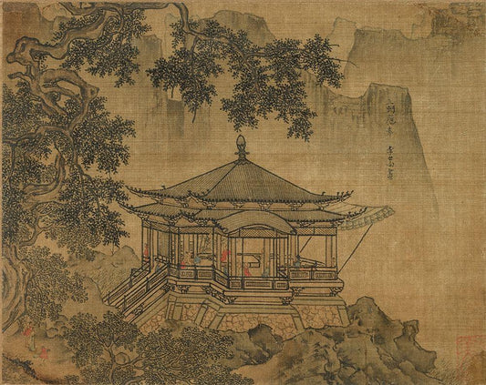 A Pavilion White Modern Wood Framed Art Print with Double Matting by China Southen Song Dynasty