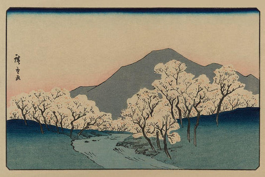 A Grove of Cherry Trees (Sakura namiki zu), 1900 White Modern Wood Framed Art Print with Double Matting by Hiroshige, Ando