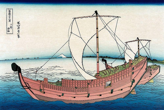 Kazusa Sea Route, 1830 White Modern Wood Framed Art Print with Double Matting by Hokusai