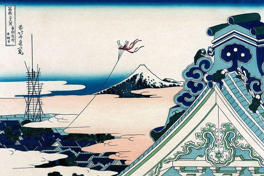 Asakusa Honganji Temple in the Eastern Capital, Edo, 1830 White Modern Wood Framed Art Print with Double Matting by Hokusai