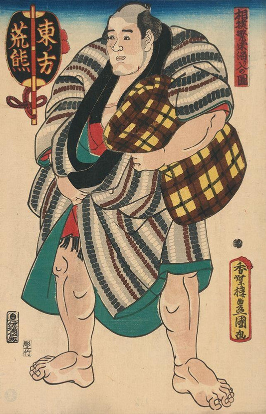 Sumo Wrestler, 1850 White Modern Wood Framed Art Print with Double Matting by Unknown