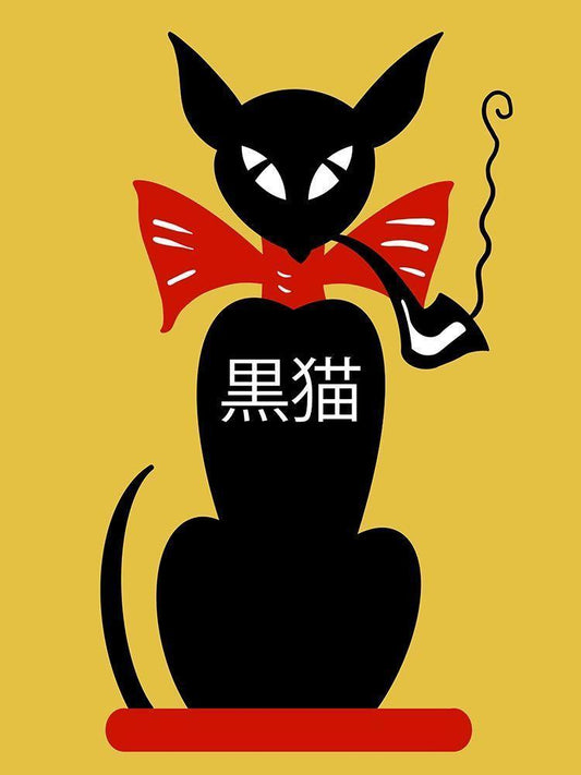 Smoking Black Cat White Modern Wood Framed Art Print with Double Matting by Rogan, Mark