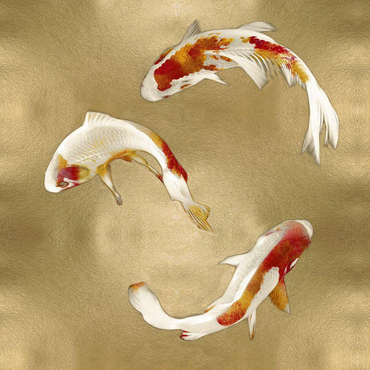 Koi on Gold I White Modern Wood Framed Art Print with Double Matting by Blake, Madeline