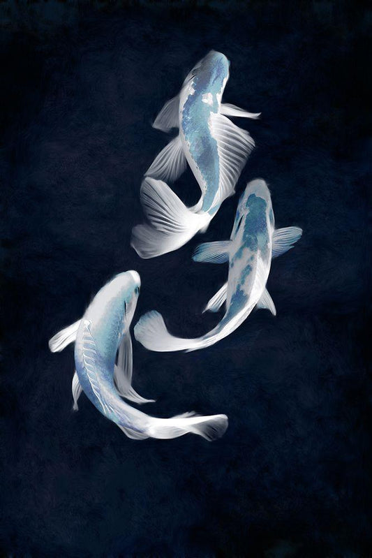 Koi on Blue I White Modern Wood Framed Art Print with Double Matting by Blake, Madeline