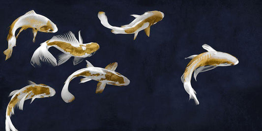 Koi Gold on Black I White Modern Wood Framed Art Print with Double Matting by Blake, Madeline