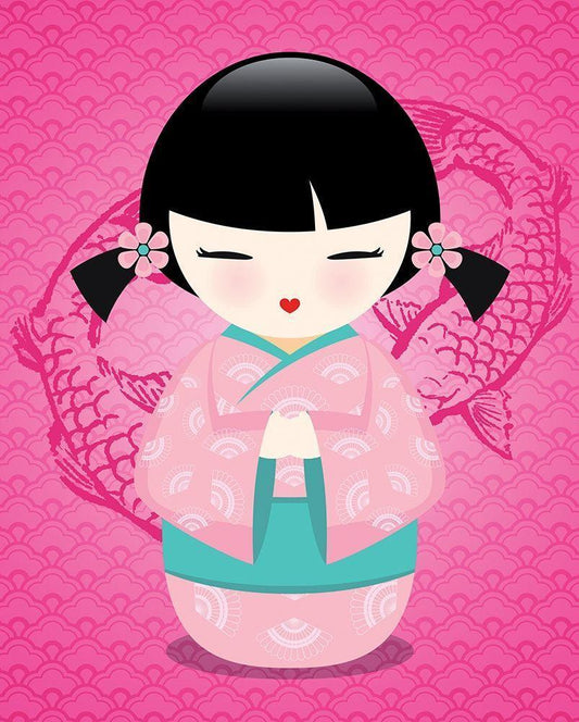 Kokeshis Popcolor I White Modern Wood Framed Art Print with Double Matting by BRAUN Studio