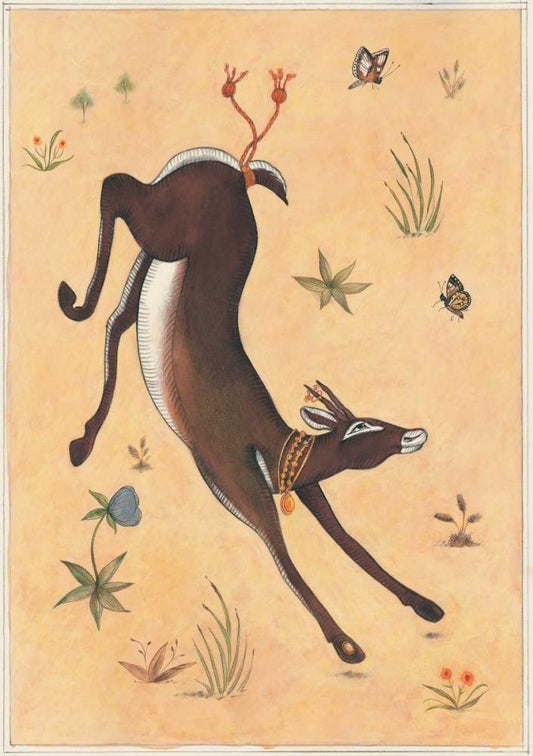 Black Deer-Doe-Indian Animals White Modern Wood Framed Art Print with Double Matting by Gynn, Fran