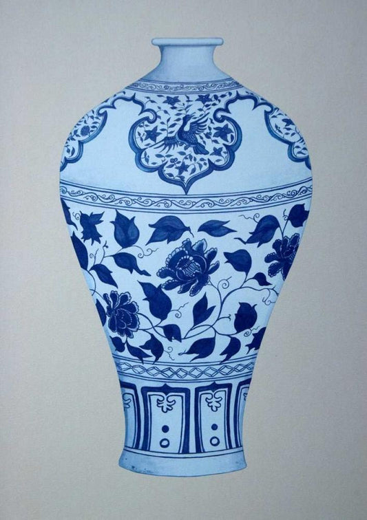 Peacock and Peonies Wine Jar White Modern Wood Framed Art Print with Double Matting by Anderton, Caroline