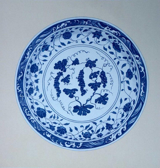 Ming, Vine and Grape Platter White Modern Wood Framed Art Print with Double Matting by Anderton, Caroline