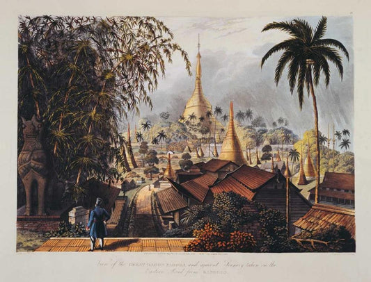 Rangoon, Great Dagon Pagoda White Modern Wood Framed Art Print with Double Matting by Moore,Ltnt Joseph
