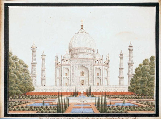 The Taj Mahal with Garden White Modern Wood Framed Art Print with Double Matting by Anon, Mughal 1813