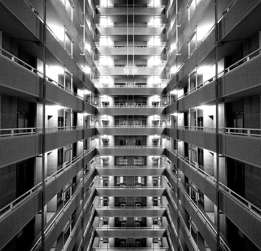 Corridor White Modern Wood Framed Art Print with Double Matting by Tajima, Koji