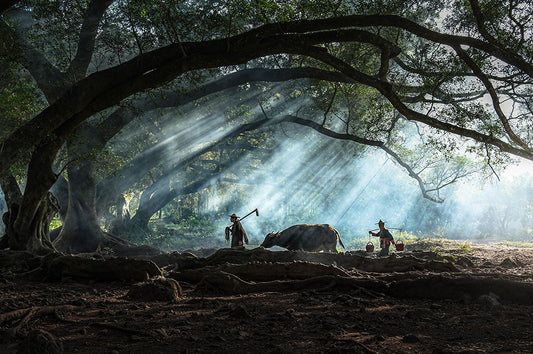 Harvesting Strabismus White Modern Wood Framed Art Print with Double Matting by Trung Dung, Ngo