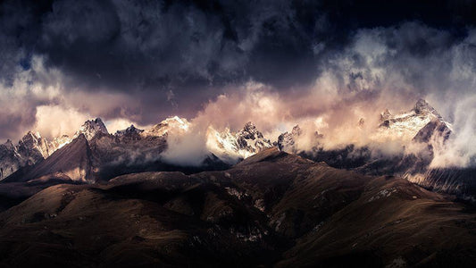 Tibet Snow Mountain A??Aenandfrac14;EÂ?Ay?Ac?A?? White Modern Wood Framed Art Print with Double Matting by Qiye