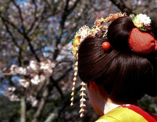 Japan, Kyoto Geishas head on Philosophers Path White Modern Wood Framed Art Print with Double Matting by Ross, Nancy , Steve