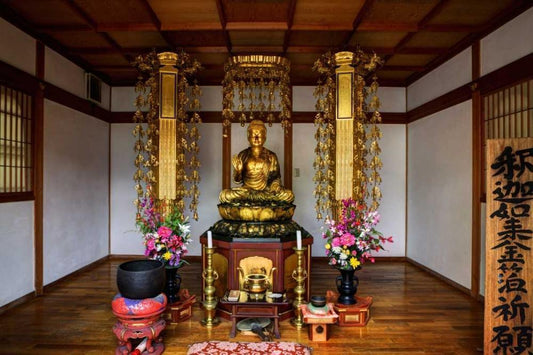 Japan, Kyoto Thousands of Buddhist statuettes White Modern Wood Framed Art Print with Double Matting by Flaherty, Dennis