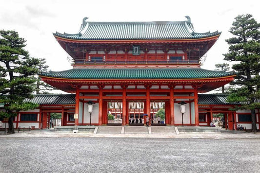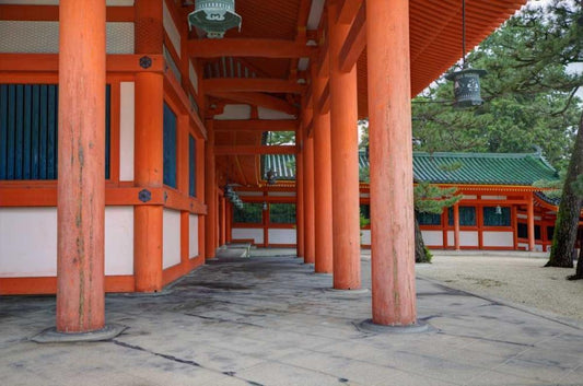 Japan, Kyoto, Heian Jingu Shrine, Shinto shrine White Modern Wood Framed Art Print with Double Matting by Flaherty, Dennis