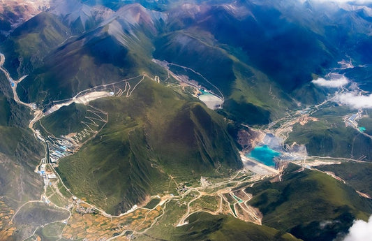 Aerial view of village and barley field in Lhasa Valley-Tibet-China White Modern Wood Framed Art Print with Double Matting by Su, Keren