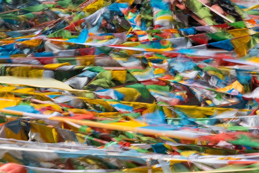 Prayer flags in Simila Mountain-Gyantse County-Tibet-China White Modern Wood Framed Art Print with Double Matting by Su, Keren