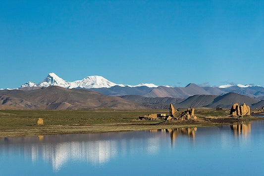 Ruins by a lake-Tibetan Plateau-Dhaulagiri-Shigatse Prefecture-Tibet-China White Modern Wood Framed Art Print with Double Matting by Su, Keren