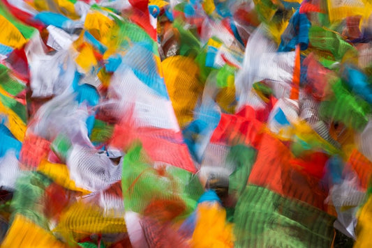 Prayer flags on Tibetan Plateau-Namtso-Lake Nam-Tibet-China White Modern Wood Framed Art Print with Double Matting by Su, Keren