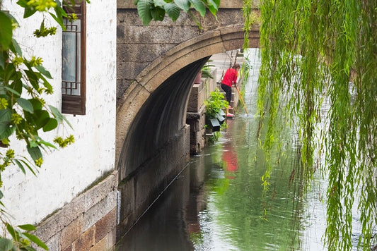 Old house and stone bridge on the Grand Canal-Shaoxing-Zhejiang Province-China White Modern Wood Framed Art Print with Double Matting by Su, Keren