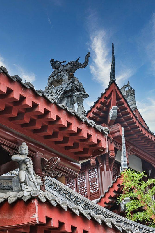 Asia-China-Sichuan Province-Cheng Du-Temple Rooftop White Modern Wood Framed Art Print with Double Matting by Looney, Hollice