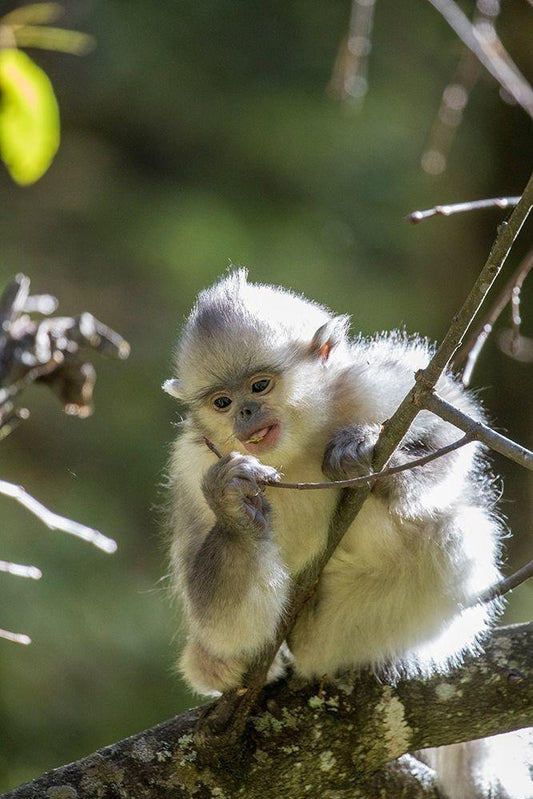Asia-China-Tacheng-Young Yunnan Black Snub-Nosed Monkey White Modern Wood Framed Art Print with Double Matting by Looney, Hollice