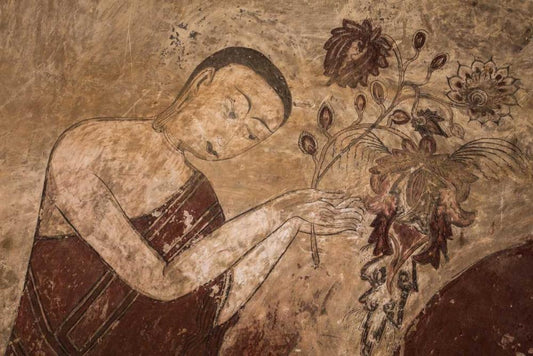 Myanmar, Bagan Artwork in a Buddhist temple White Modern Wood Framed Art Print with Double Matting by Zuckerman, Jim