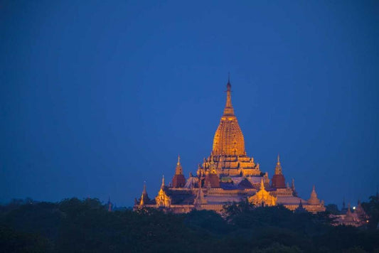Myanmar, Bagan Twilight on Ananda Temple White Modern Wood Framed Art Print with Double Matting by Zuckerman, Jim