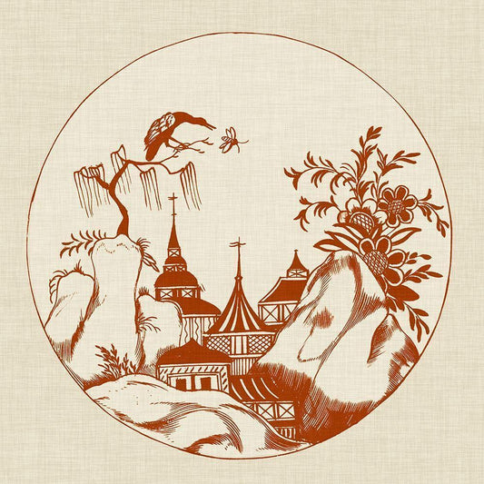 Pagoda Design I Gold Ornate Wood Framed Art Print with Double Matting by Vision Studio