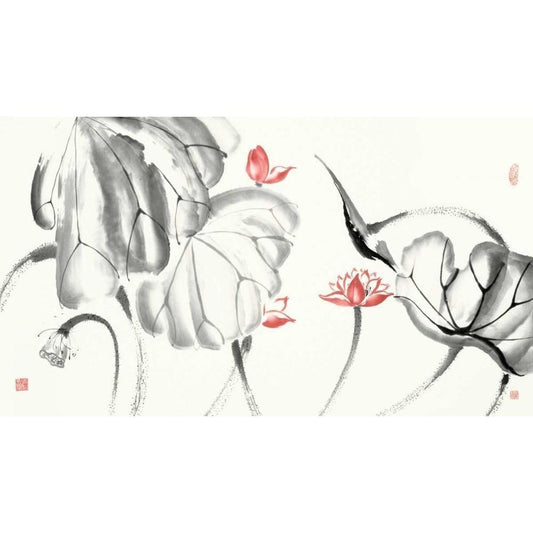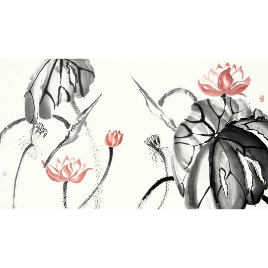 Lotus Study with Coral II Gold Ornate Wood Framed Art Print with Double Matting by Rae, Nan