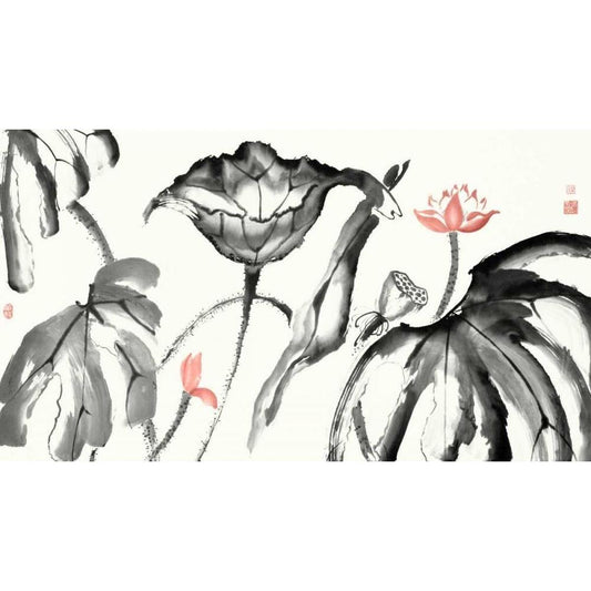 Lotus Study with Coral III Gold Ornate Wood Framed Art Print with Double Matting by Rae, Nan