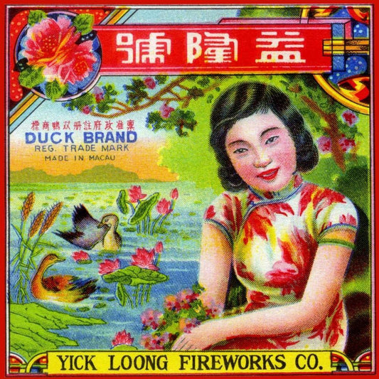 Yick Loong Fireworks Co. Duck Brand Firecracker White Modern Wood Framed Art Print with Double Matting by Unknown