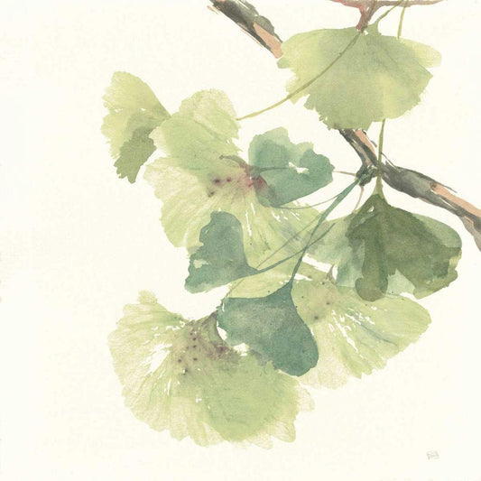Gingko Leaves II Light Gold Ornate Wood Framed Art Print with Double Matting by Paschke, Chris