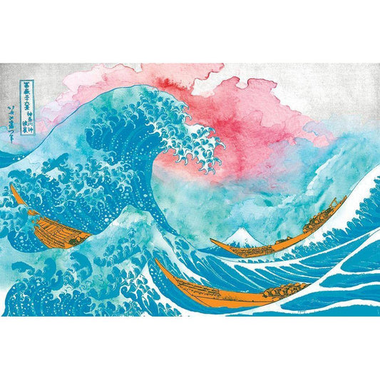 The Great Teal Wave Gold Ornate Wood Framed Art Print with Double Matting by Hastings, Porter