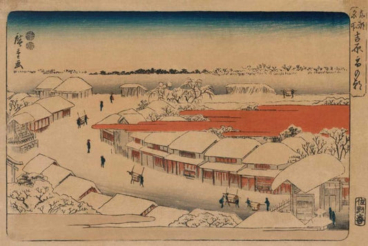 Morning snow at Yoshiwara White Modern Wood Framed Art Print with Double Matting by Hiroshige, Ando