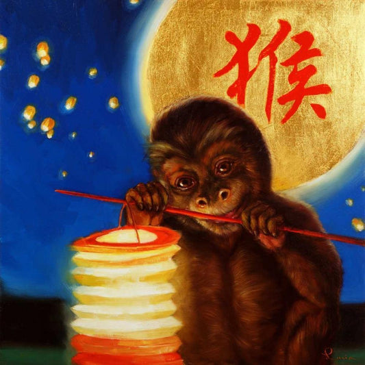Monkeyshine Gold Ornate Wood Framed Art Print with Double Matting by Heffernan, Lucia