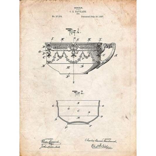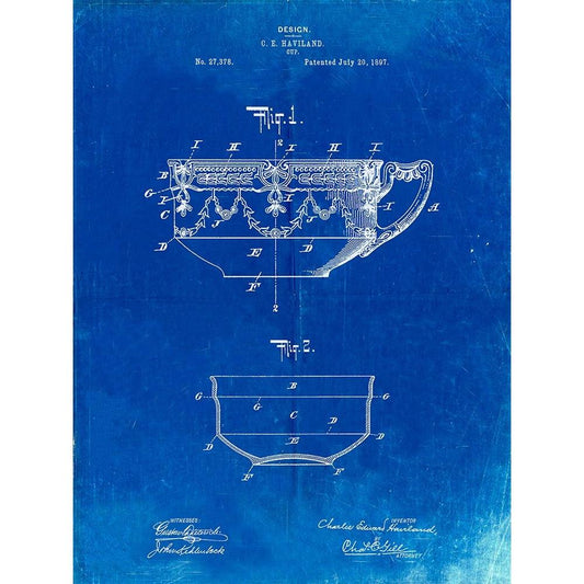 PP57-Faded Blueprint Haviland Demitasse Tea Cup Patent Poster Gold Ornate Wood Framed Art Print with Double Matting by Borders, Cole