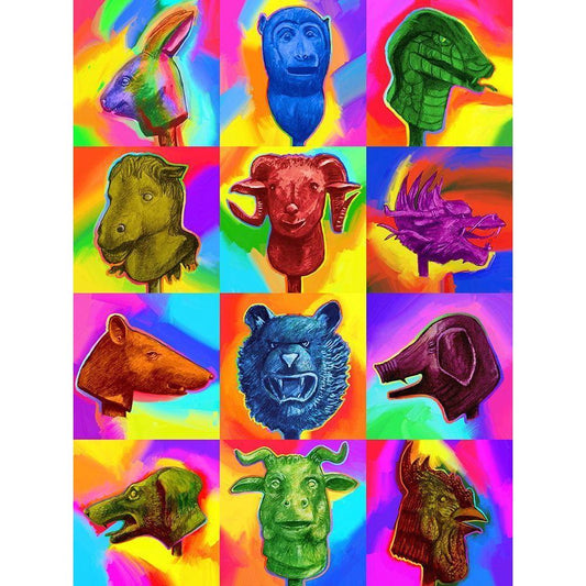 Chinese Zodiac Pop Art Gold Ornate Wood Framed Art Print with Double Matting by Green, Howie