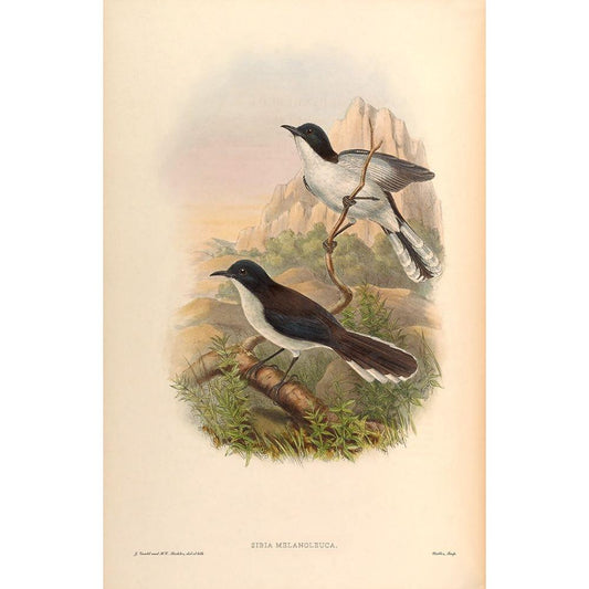 Sibia Melanoleuca Gold Ornate Wood Framed Art Print with Double Matting by CAG